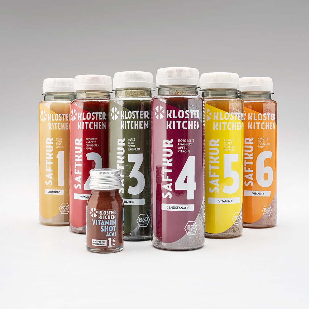Und das ist noch nicht alles! Unsere Saftkuren sind gluten- und laktosefrei und benötigen keine Kühlung - das bedeutet nicht nur weniger Stress, sondern auch mehr Nachhaltigkeit für unsere Umwelt. Zudem werden sie in Deutschland produziert und in recycelten PET-Flaschen verpackt. Und das Beste: Jede unserer kreativen Mischungen wurde in Zusammenarbeit mit Ernährungswissenschaftlern entwickelt, um dir nicht nur eine verlässliche Qualität, sondern auch Nährstoffe zu bieten, um deinen Alltag zu meistern. Dabei stehen wir dir jederzeit mit ausführlicher Begleitung und Beratung zur Seite.