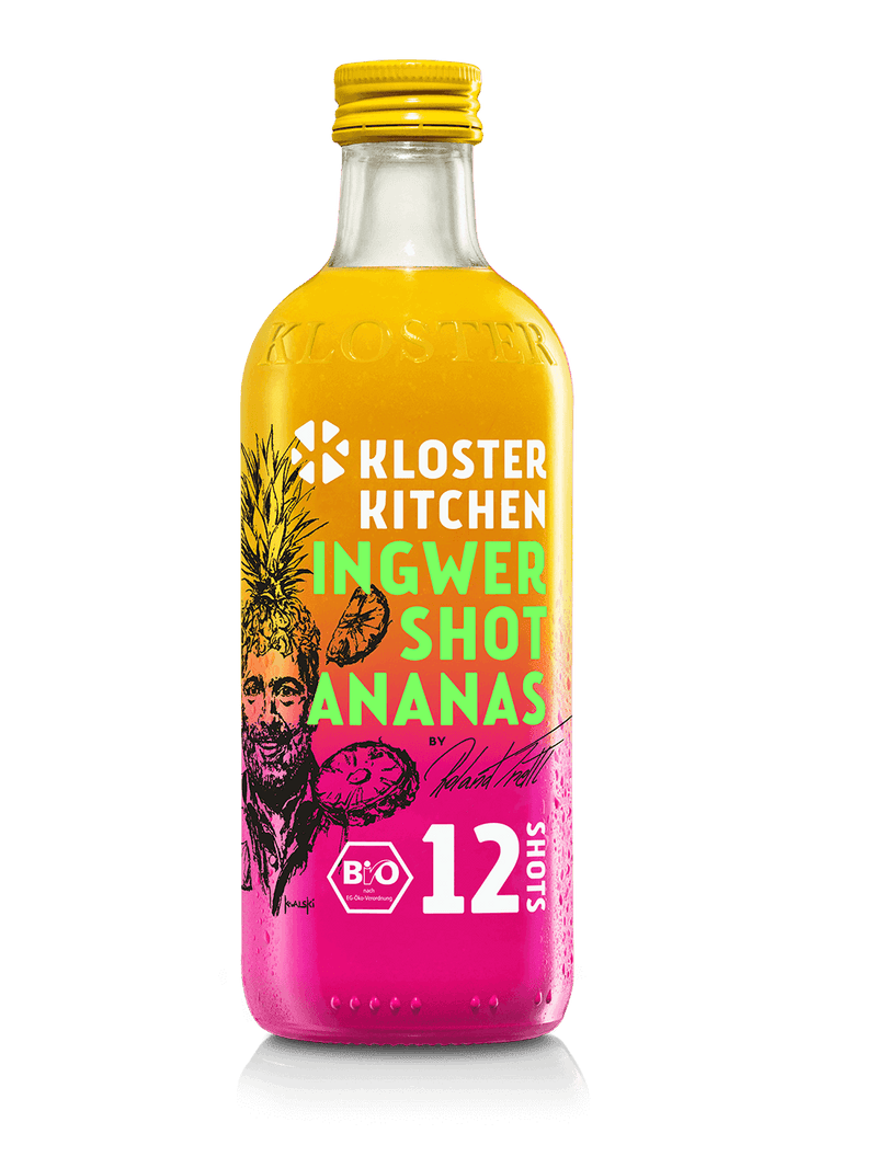 Ob 12SHOTS für zu Hause oder 1SHOT für unterwegs. Jeder Kloster Kitchen Ingwer Shot ist nichts weniger als pure Inspiration für den Geist statt nur irgendein langweiliger Shot.
